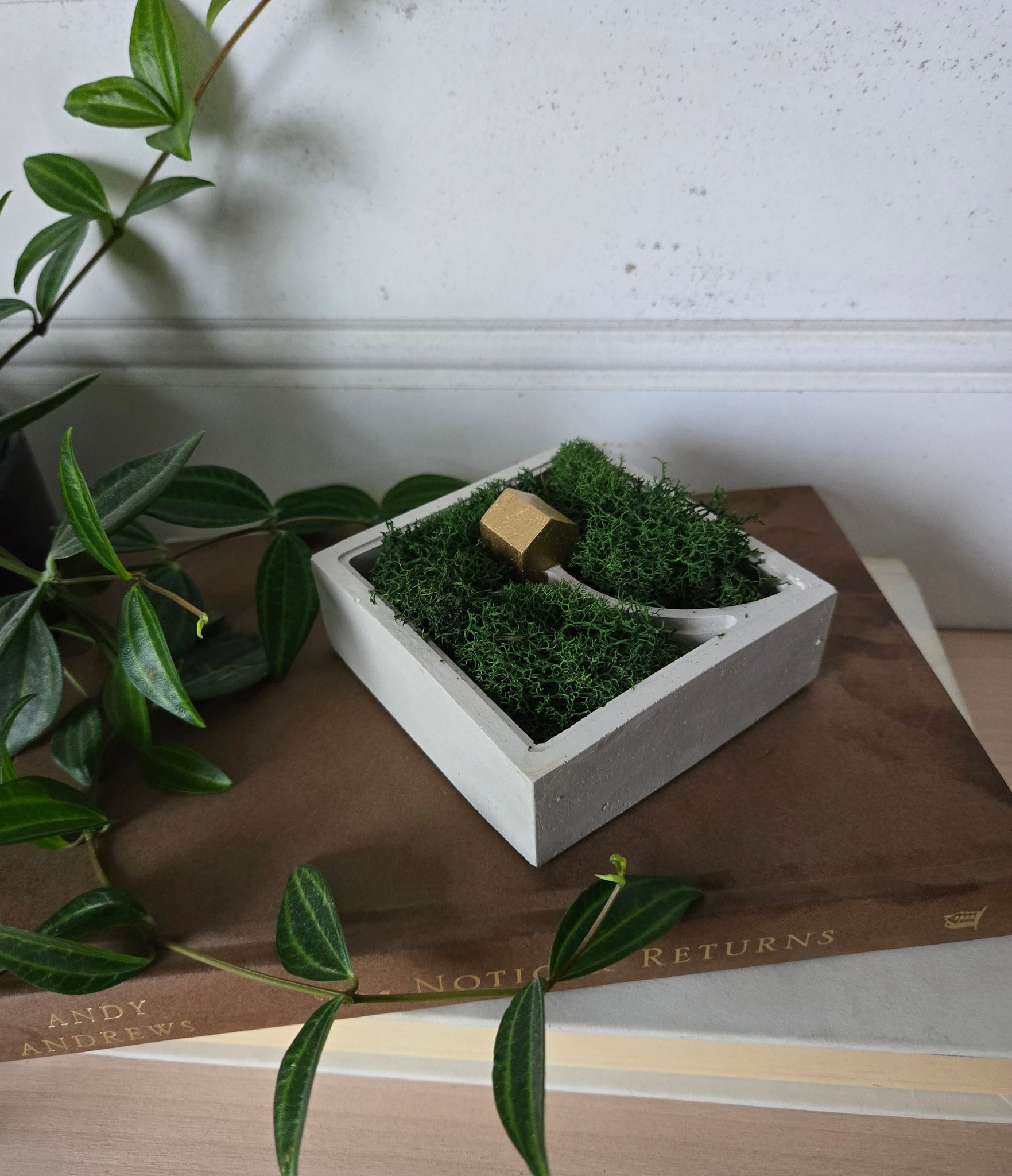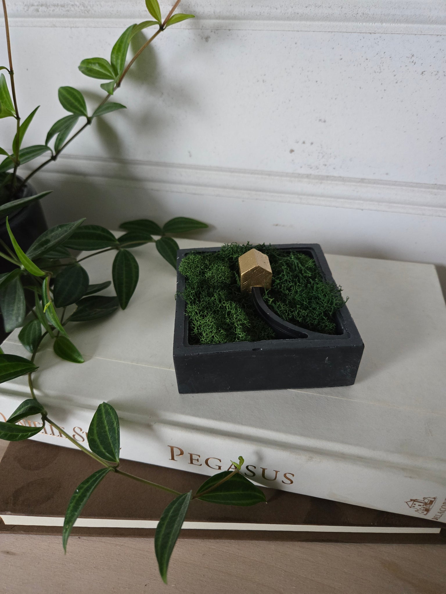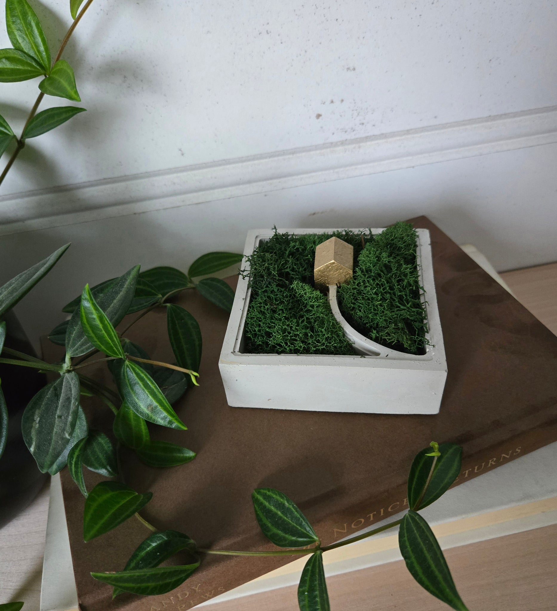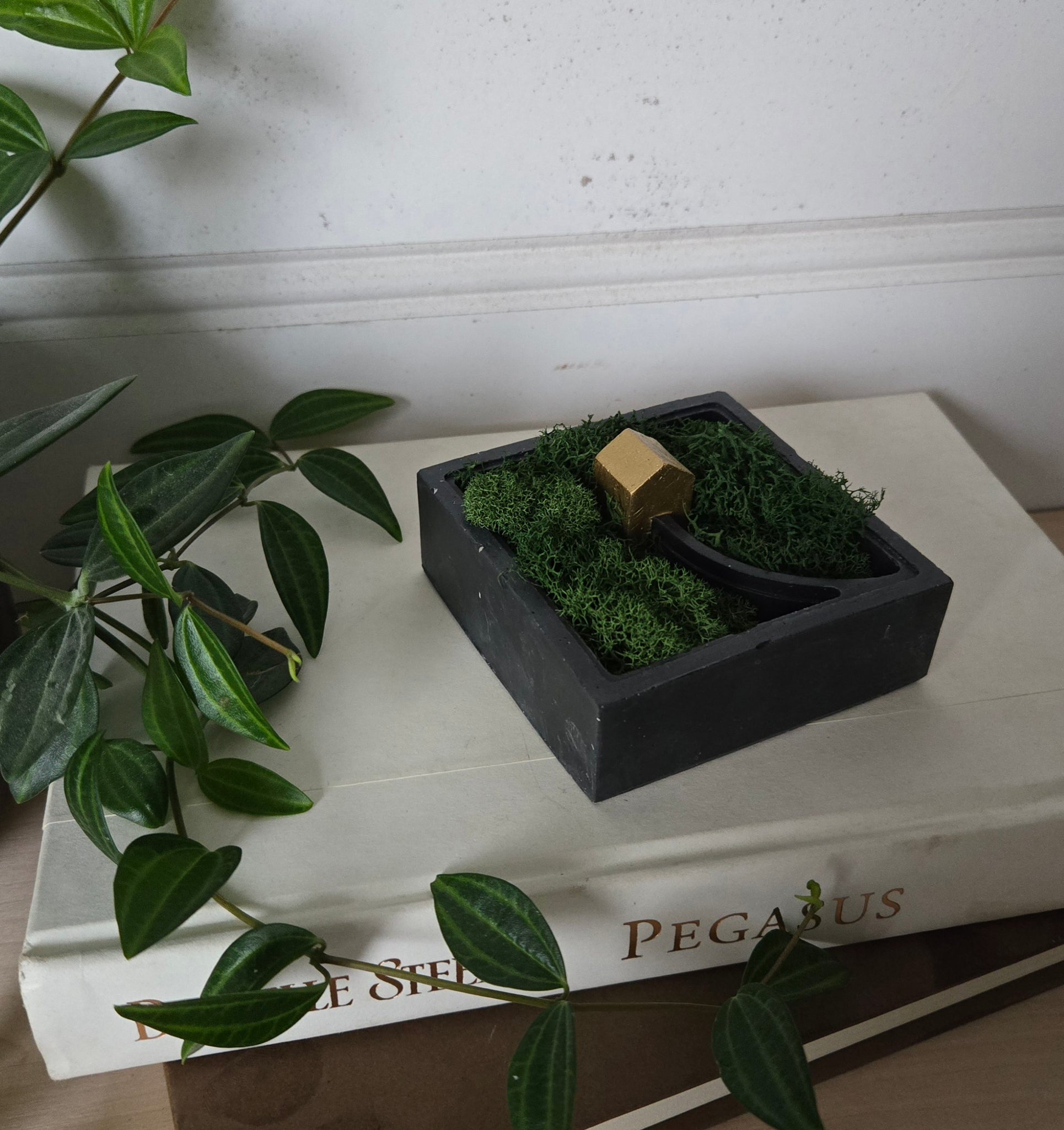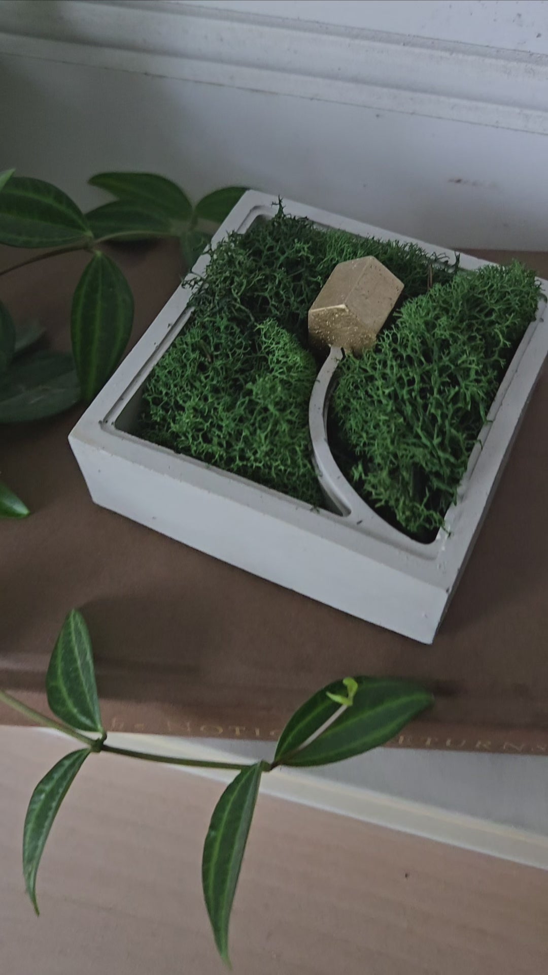 Includes preserved dried moss, no care needed.